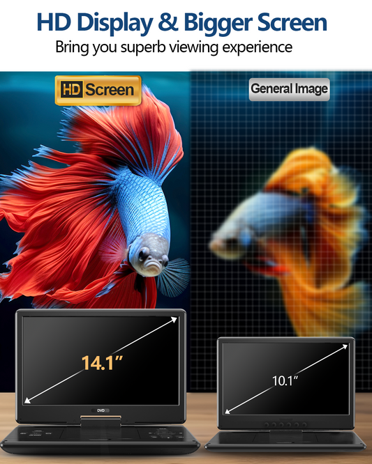 15.9" Portable DVD Player for Car, 14.5" HD Swivel Screen with 5-Hour Rechargeable Battery, Dual Stereo Speakers, Support USB/SD/Sync TV, Regions Free, Last Memory