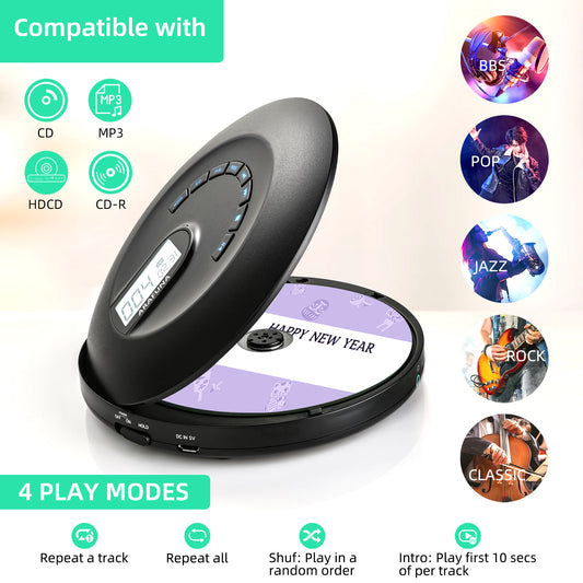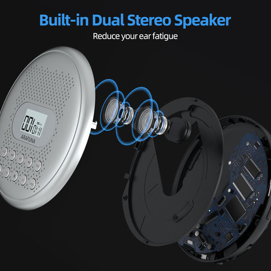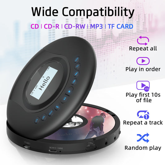 CD Player, Built-in Speaker, Portable CD Player, 1,400 mAh, Rechargeable, Sound Prevention, Adjustable Playback Speed, AB Repeat Function, Resume Function, 32 GB MicroSD Card Support